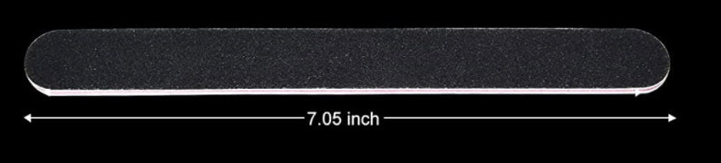 Una lima negra de borde redondo de grano 100/180. Un lado es de grano 100 y el otro lado es de grano 180. 7,05 pulgadas de largo.