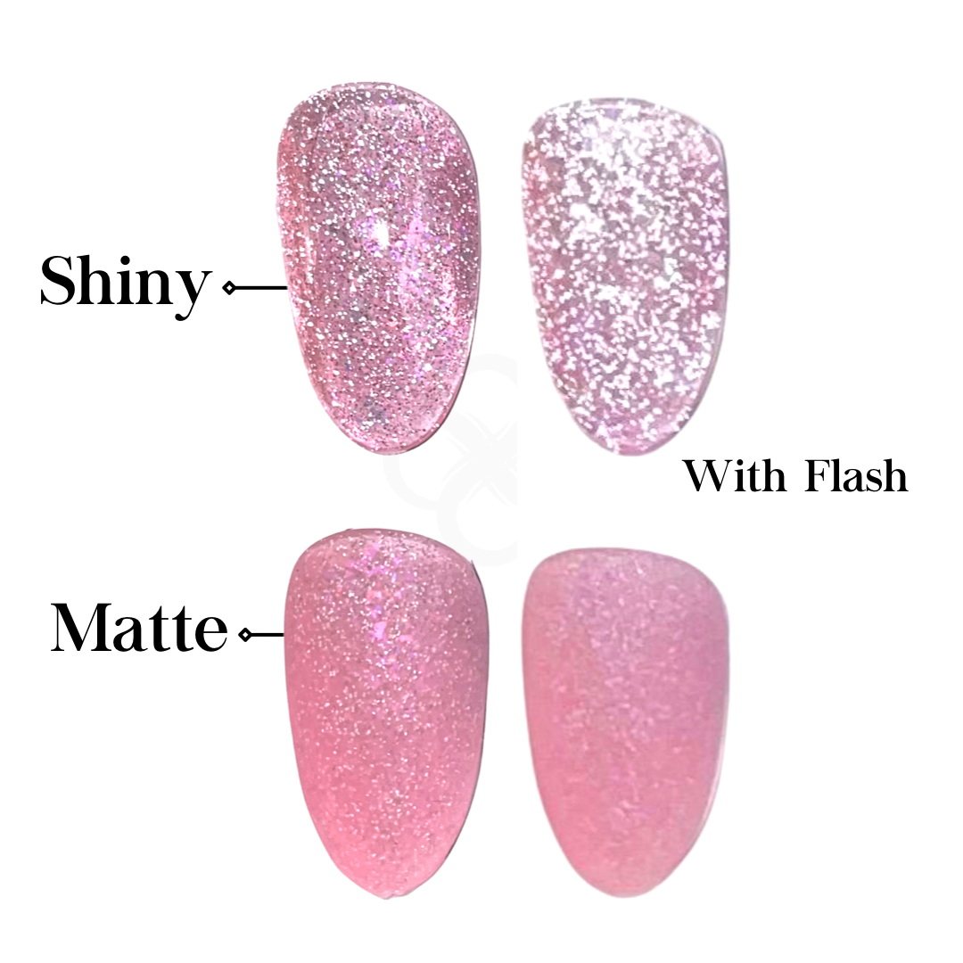 Precioso esmalte en gel reflectante rosa. Uno de los muchos colores que Kreativ Nail Supply tiene para ofrecer con nuestra línea Signature Gel Polish. Este esmalte tiene mucho brillo y se refleja con flash. Debe curarse con una lámpara de uñas UV/LED.