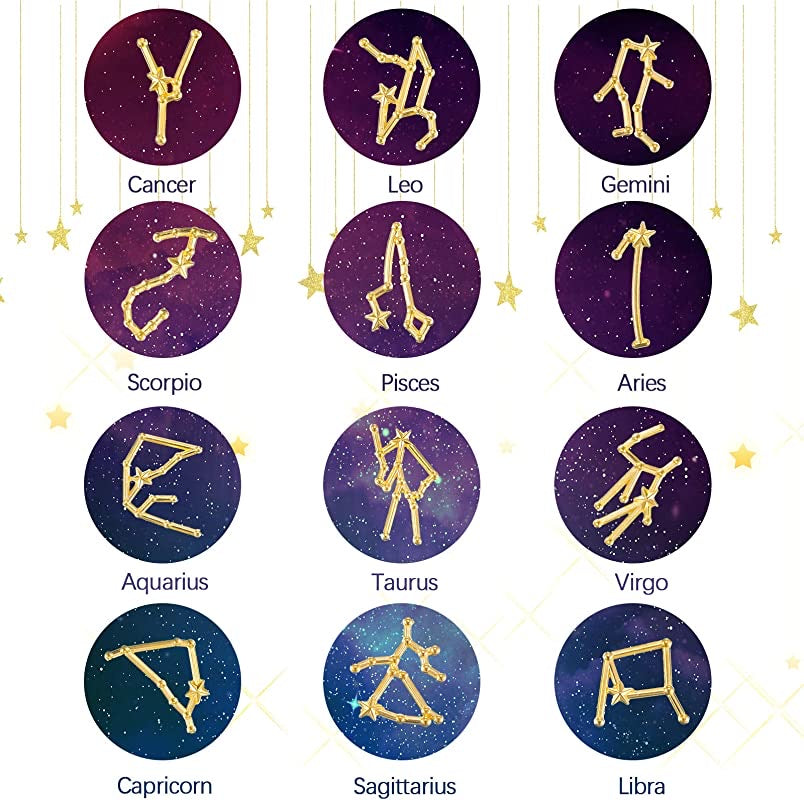 ¡Lleva tu expresión al siguiente nivel con Zodiac Constellations! Estos dijes dorados para decoración de uñas causarán una gran declaración. El tamaño del encanto es de aproximadamente 1 pulgada cada uno.