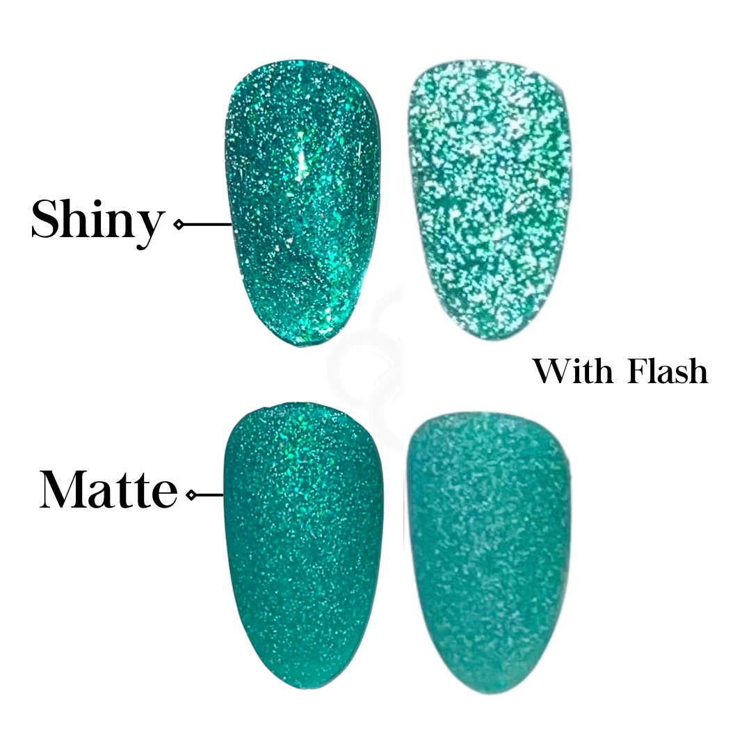 Beautiful aqua reflective gel polish. One of the many colors Kreativ Nail Supply has to offer with our Signature Gel Polish line. This polish is highly simmery, reflective effect shows best with flash. Must be cured with a UV/LED nail lamp.