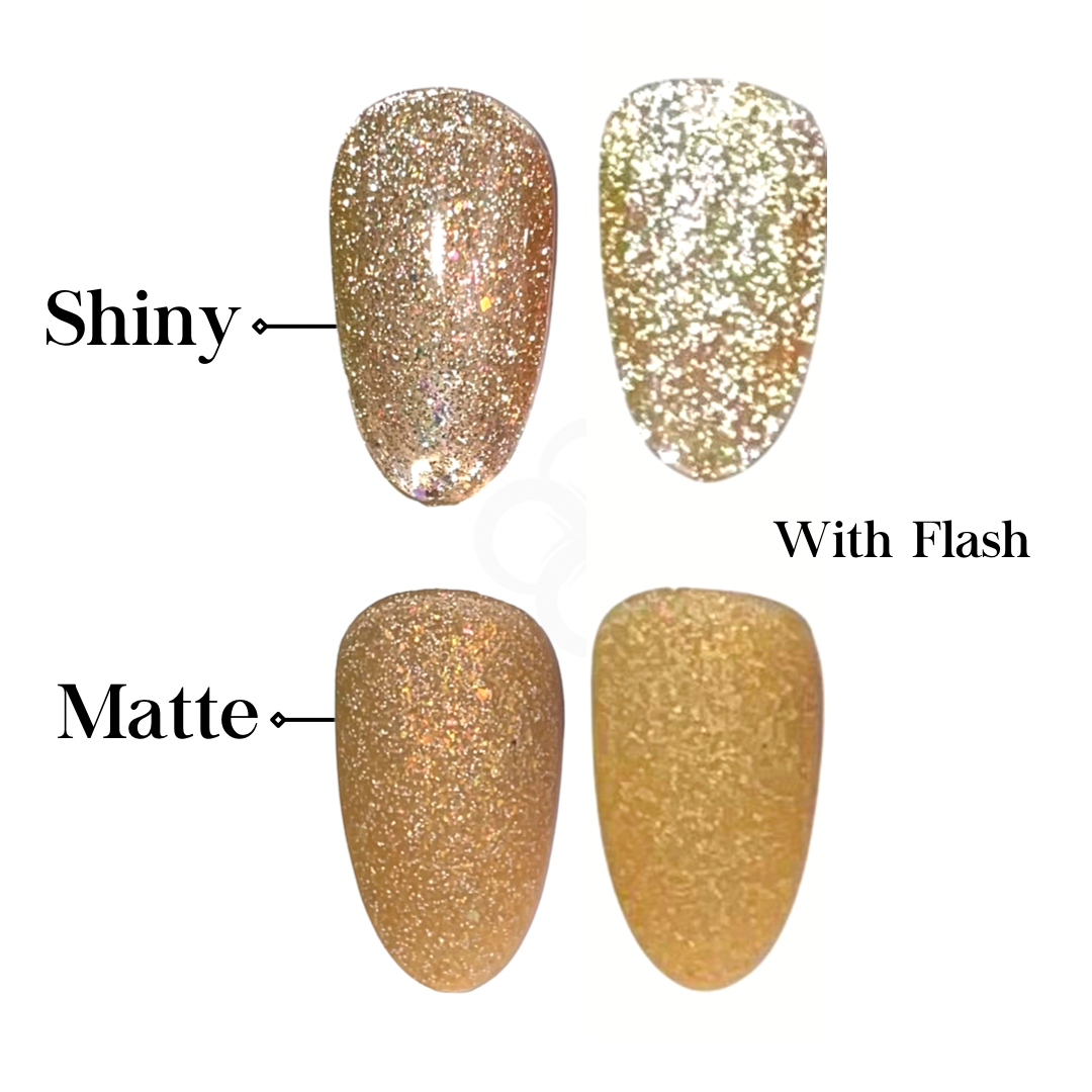 Beautiful gold reflective gel polish. One of the many colors Kreativ Nail Supply has to offer with our Signature Gel Polish line. This polish is highly simmery, reflective effect shows best with flash. Must be cured with a UV/LED nail lamp.